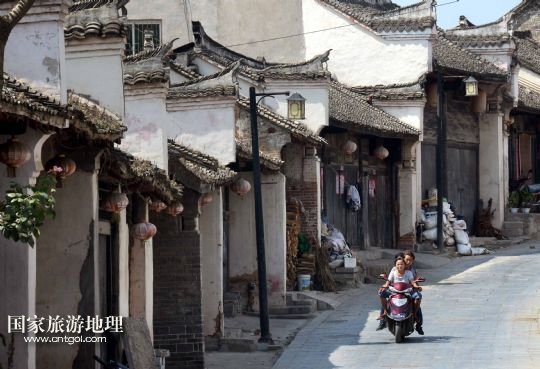 這條南北走向的小街,全長約5里,現(xiàn)存明清時代的建筑700余間,大多保存完好。其中有豪紳商賈所建的會館、廟宇,也有一般的民房,建筑造型各有特色。古街的宅樓構件,無不以石雕、磚雕、木雕藝術烘托而成。各種造型的石坊、門墩、柱礎、檐楣,可謂各具匠心,生動逼真。