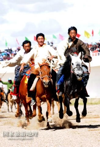 國(guó)家旅游地理 西藏那曲8月10日訊 8月10日,藏族牧民在進(jìn)行跑馬比賽。當(dāng)日,一年一度的藏北“恰青”賽馬藝術(shù)旅游節(jié)開幕,牧民們相聚那曲賽馬場(chǎng),載歌載舞慶祝豐收。 /新華社記者唐召明攝