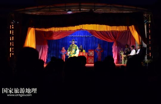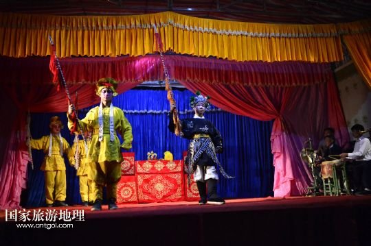 國家旅游地理 江西九江4月2日訊 在溪口鎮(zhèn)小溪村,三元班在演出寧河戲《三請樊梨花》(3月26日攝)。寧河戲是江西地方大型古老劇種之一,發(fā)源于江西修水縣,流行于贛北及湘、鄂、贛交界一帶。在寧河戲鼎盛的清乾隆年間,曾出現(xiàn)過“寧州十八班”,從業(yè)人員達(dá)到六七百人。然而隨著時代的變遷,寧河戲逐步?jīng)]落,最大的危機(jī)是逐漸空心化的村莊和村莊里越來越少的老戲迷。