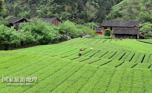 4月27日,柳溪村的村民在村內(nèi)的茶園采茶。