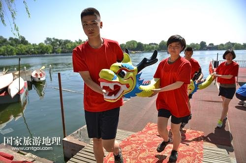 國家旅游地理 北京5月28日訊 5月28日,龍舟賽開始前,工作人員按照傳統(tǒng)儀式將“神龍”請上碼頭點(diǎn)睛。當(dāng)日,北京什剎海街道舉辦迎端午節(jié)系列活動,通過賽龍舟和纏繒子、吆喝表演等豐富多彩的民俗文化活動,讓端午節(jié)的傳統(tǒng)習(xí)俗回歸百姓生活,彰顯什剎海地區(qū)民俗文化的特色。新華社記者 李鑫 攝
