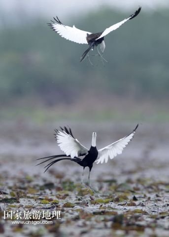國家旅游地理 江西九江5月31日訊 5月29日,兩只水雉在江西省九江市賽城湖濕地嬉戲。入夏以來,數(shù)十只漂亮的水雉飛抵江西九江市賽城湖濕地,湖區(qū)良好的生態(tài)為水雉提供了舒適的棲息環(huán)境。水雉體態(tài)優(yōu)美,羽色艷麗,輕步行走于睡蓮、荷葉等浮葉植物上,有“凌波仙子”的美名。/新華社發(fā)(沈俊峰 攝)