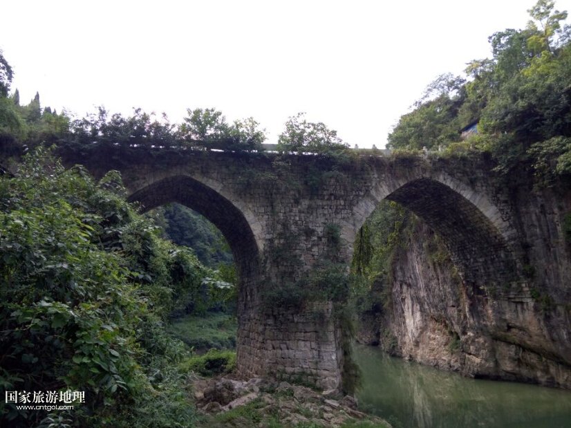 這是黔南福泉的葛鏡橋。葛鏡橋建造于明朝萬歷年間,距今已有四百多年的歷史,是當(dāng)時的平越人葛鏡出資建造。當(dāng)時造橋技術(shù)落后,加之洪水等自然因素,葛鏡造橋也費(fèi)盡周折,造橋三次才最終建成葛鏡橋。葛鏡橋全長51.44米,3孔,大孔高9.61米,橋面寬8.5米,高約30米;三孔跨徑分別為25.62米、12.3米和6.26米;三孔拱高分別為9.61米、9.9米和5.02米。工程艱巨,雄偉壯觀,“為西南橋梁之冠”。葛鏡橋歷時數(shù)百年,至今仍堅固如初,實為罕見,也有“北有趙州橋、南有葛鏡橋”之稱。