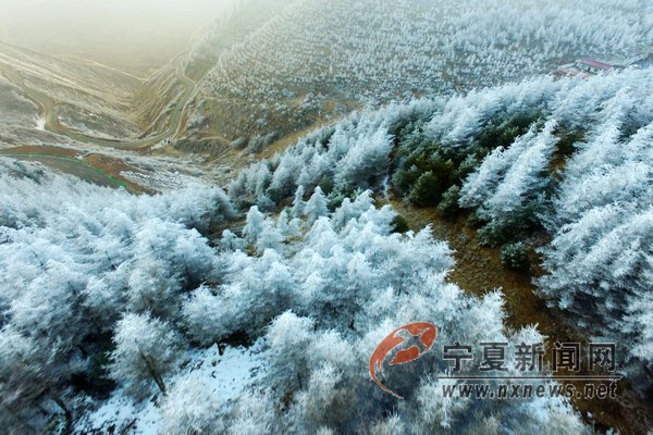 12月8日16時(shí)許,寧夏固原是六盤(pán)山隆德縣與涇源縣交界處突現(xiàn)霧凇,美麗的霧凇將山川樹(shù)木點(diǎn)綴的晶瑩剔透。 寧夏新聞網(wǎng)記者 祁瀛濤 攝
