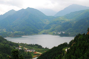 泛舟湖上,但見山環(huán)水繞,峰回路轉(zhuǎn)。放眼望去,其山巒遠(yuǎn)近高低,有翠屏而立者,有碧螺而旋者,有柱石擎天者,有丘陵迤儷者。如遇晴日,藍(lán)天白云,碧樹紅花,映入湖面,靜則含蓄,動(dòng)則朦朧。間以飛泉滴流,鳥鳴魚躍,詩情畫意,油然而生。湖壩之下,又是另一番景色。亂石突兀,三里成堆,溪流汩汩,清泉淙淙,游人入其間,采一束野花,掬一捧河水,或臥或息,或濯或浴,仰視云海變幻,聚散離合,無不心曠神怡。
